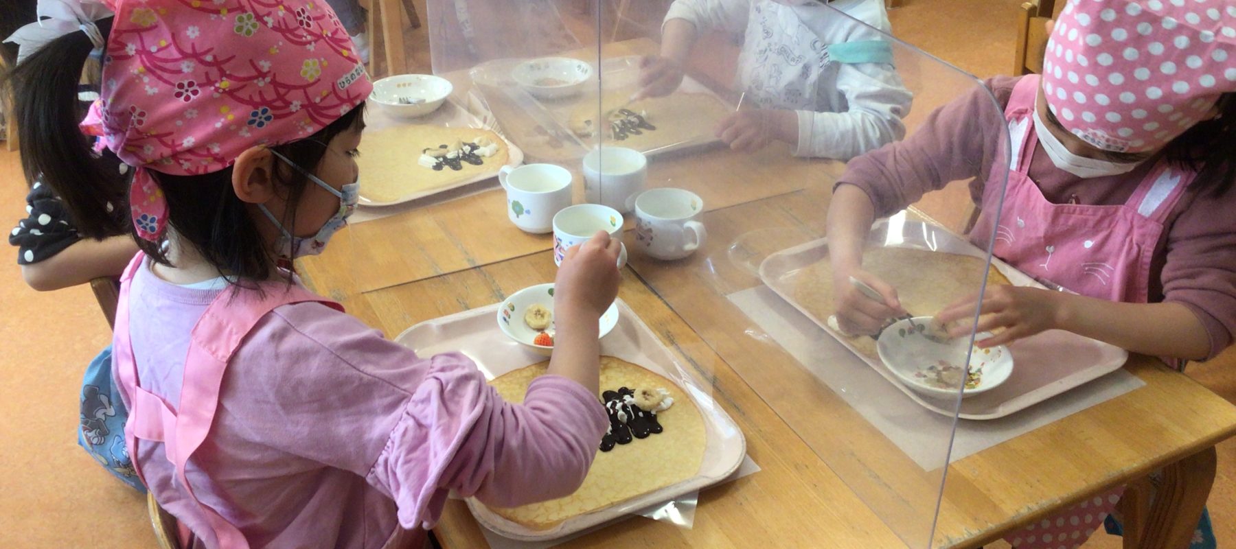 今日のおやつはクレープ!クッキングでクレープを作りました。