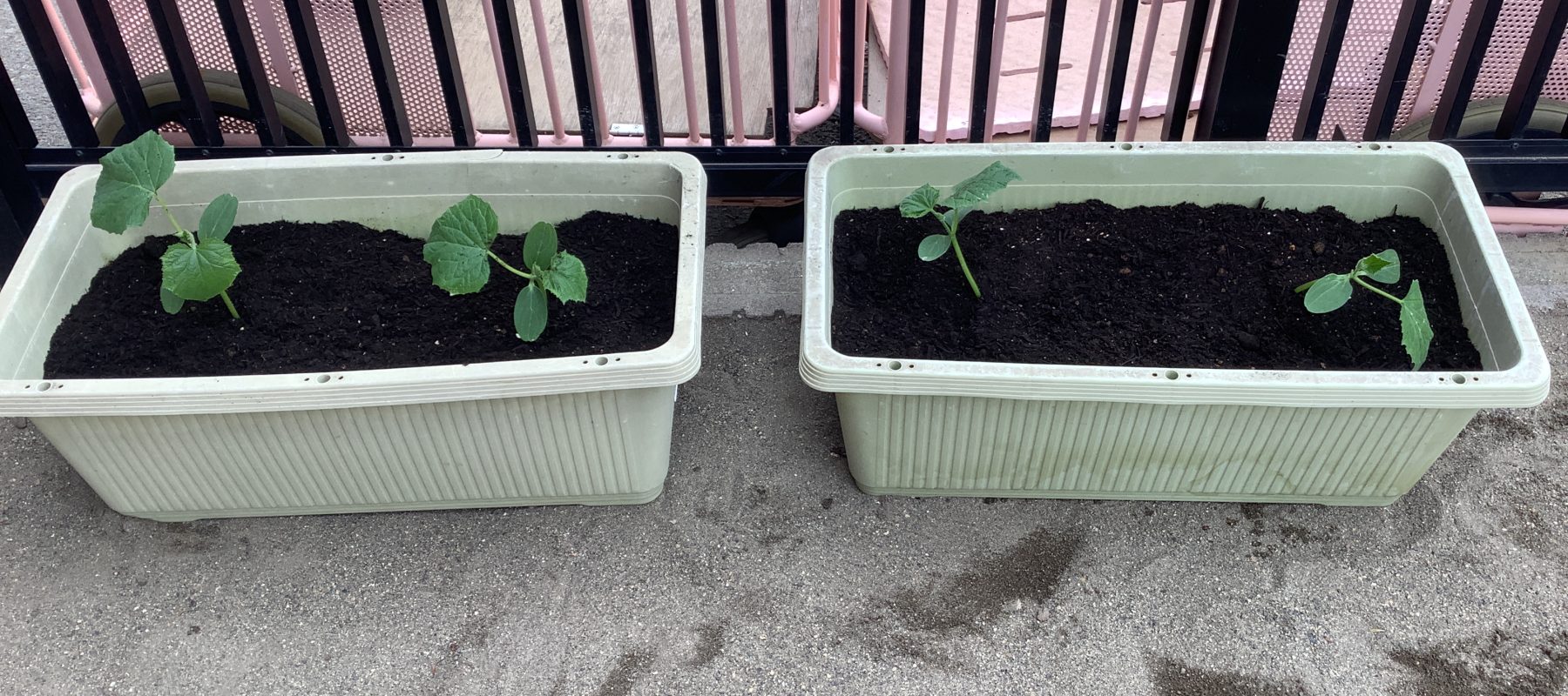 園庭に野菜や花が植えられました。毎日ながめ「早く大きくならないかな」と楽しみにしています。