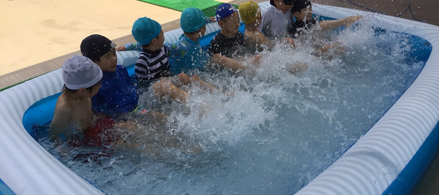 熱中症指数を気にしながら、何とかプール遊びです。入れない日も多々ありますが、入れることが決まると大喜び。