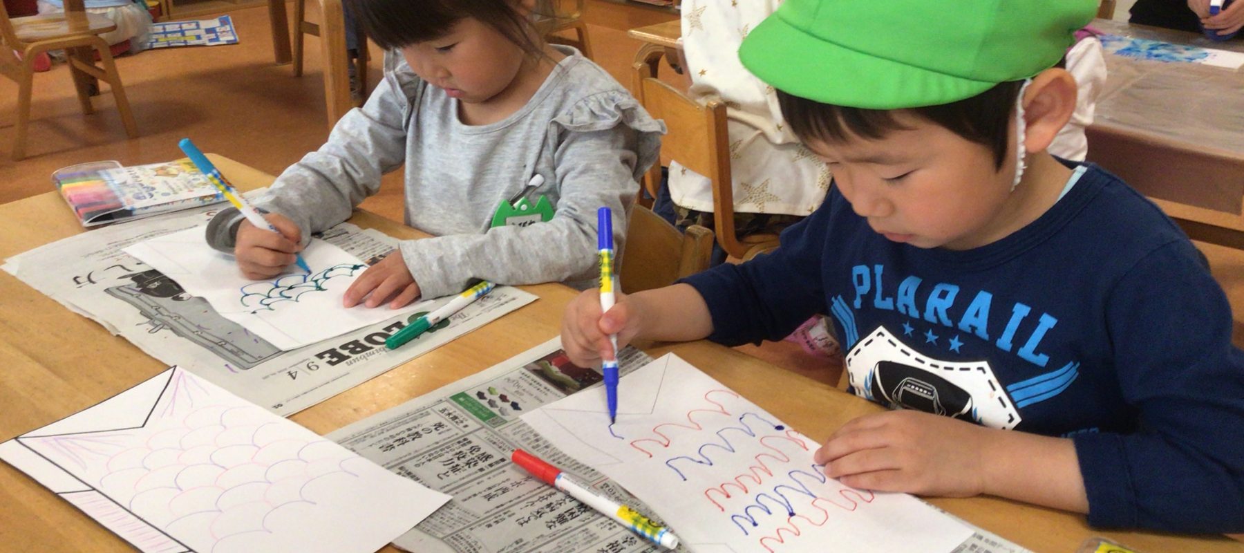 ぞう組の子ども達がこいのぼり製作を行っている様子です。